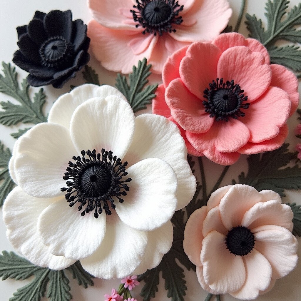 Anemones are delicate and captivating. Their striking centers make them unique. Felt anemones are perfect for adding a touch of drama to any arrangement.