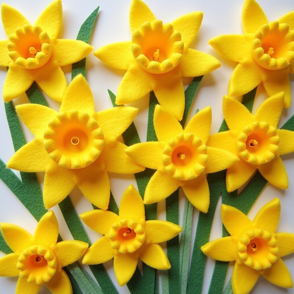 Daffodils are symbols of new beginnings. Felt daffodils bring a sense of hope and joy. They’re perfect for welcoming spring into your home.