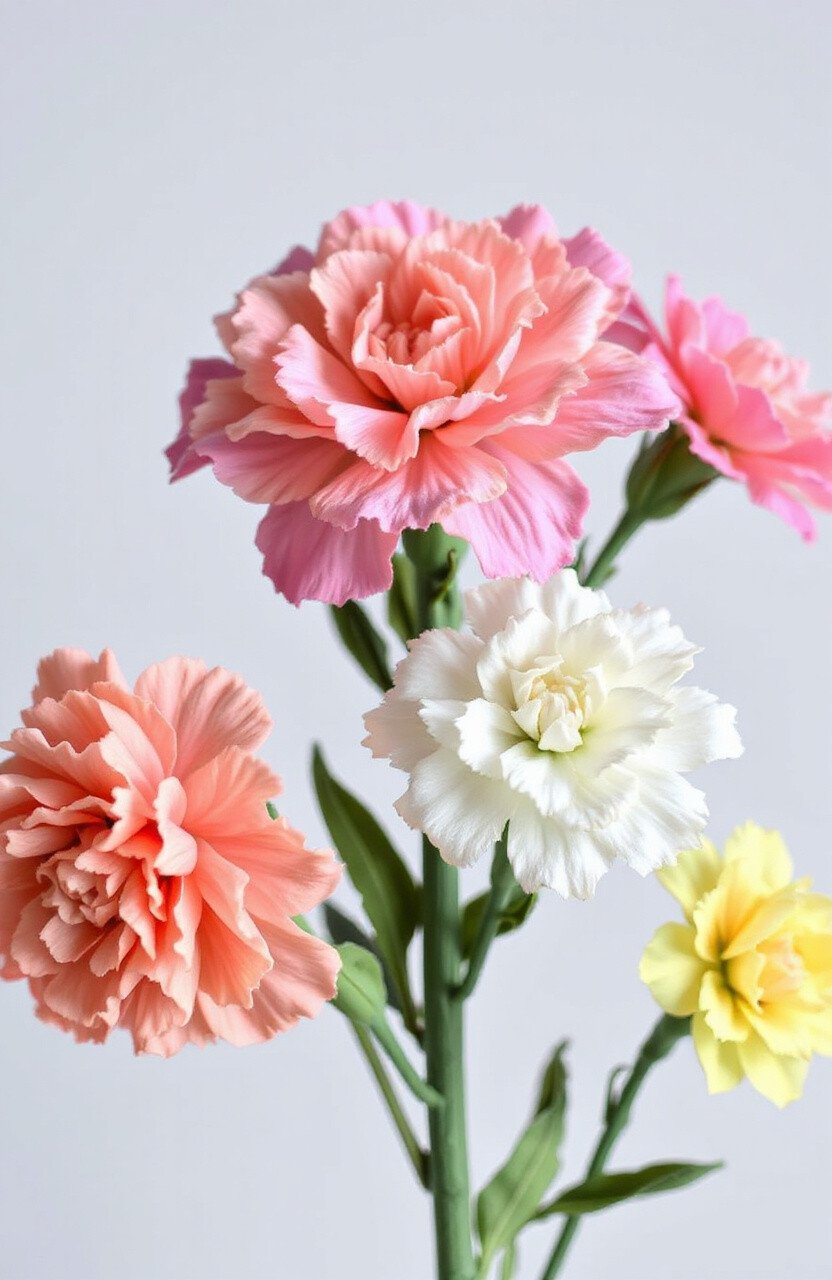 Carnations in felt form are fluffy and delightful. They’re perfect for adding volume to any floral arrangement.