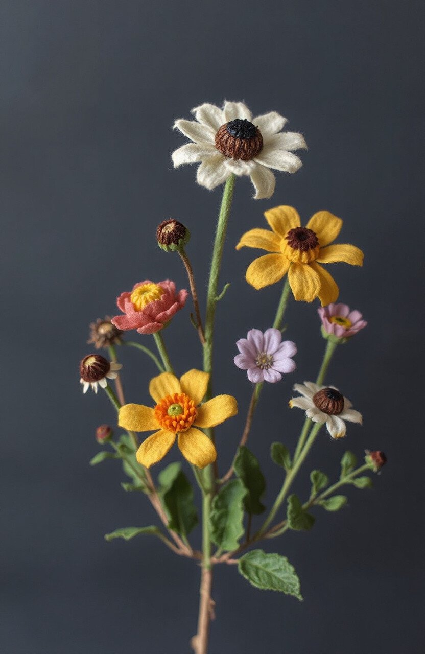 Wildflowers bring a touch of nature’s beauty indoors. Felt wildflowers can be crafted in various shapes and sizes.