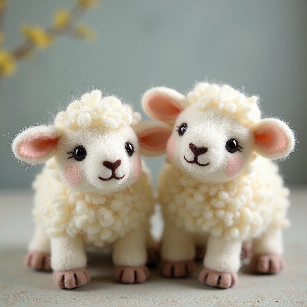 Use white or cream wool to capture their softness. These felted lambs are perfect for Easter or springtime decorations.