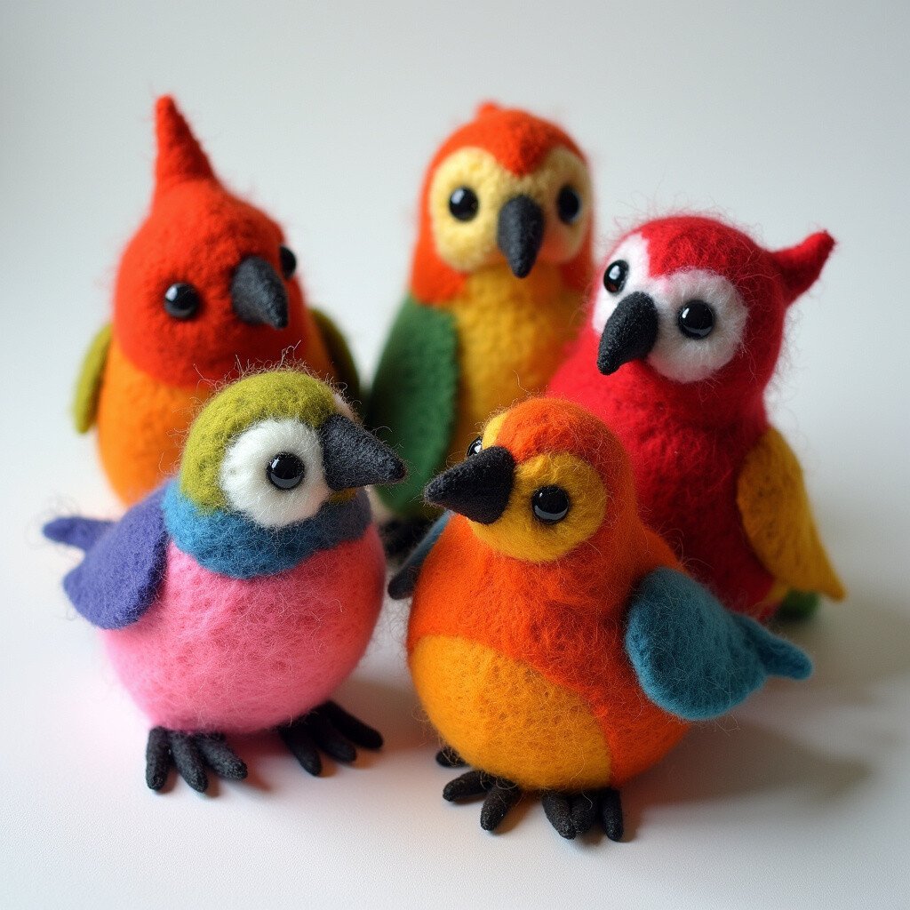 Felted birds can brighten up any space. Use bright wool to mimic real bird colors or invent your own species for a whimsical twist.