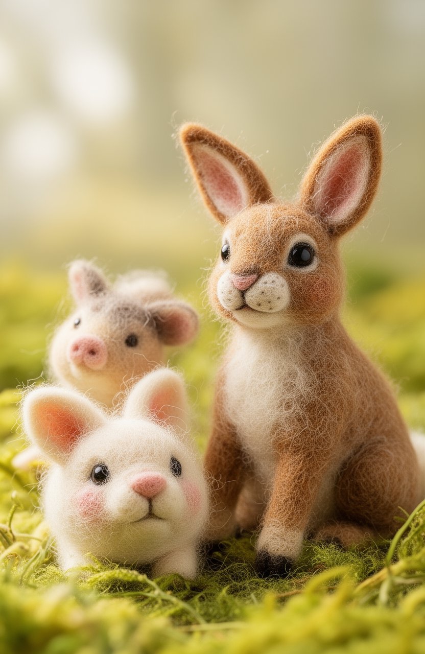 Fluffy bunnies are a classic choice for felted animals. Their round bodies and long ears make them adorable and easy to create. You can use pastel colors for a soft, dreamy look.