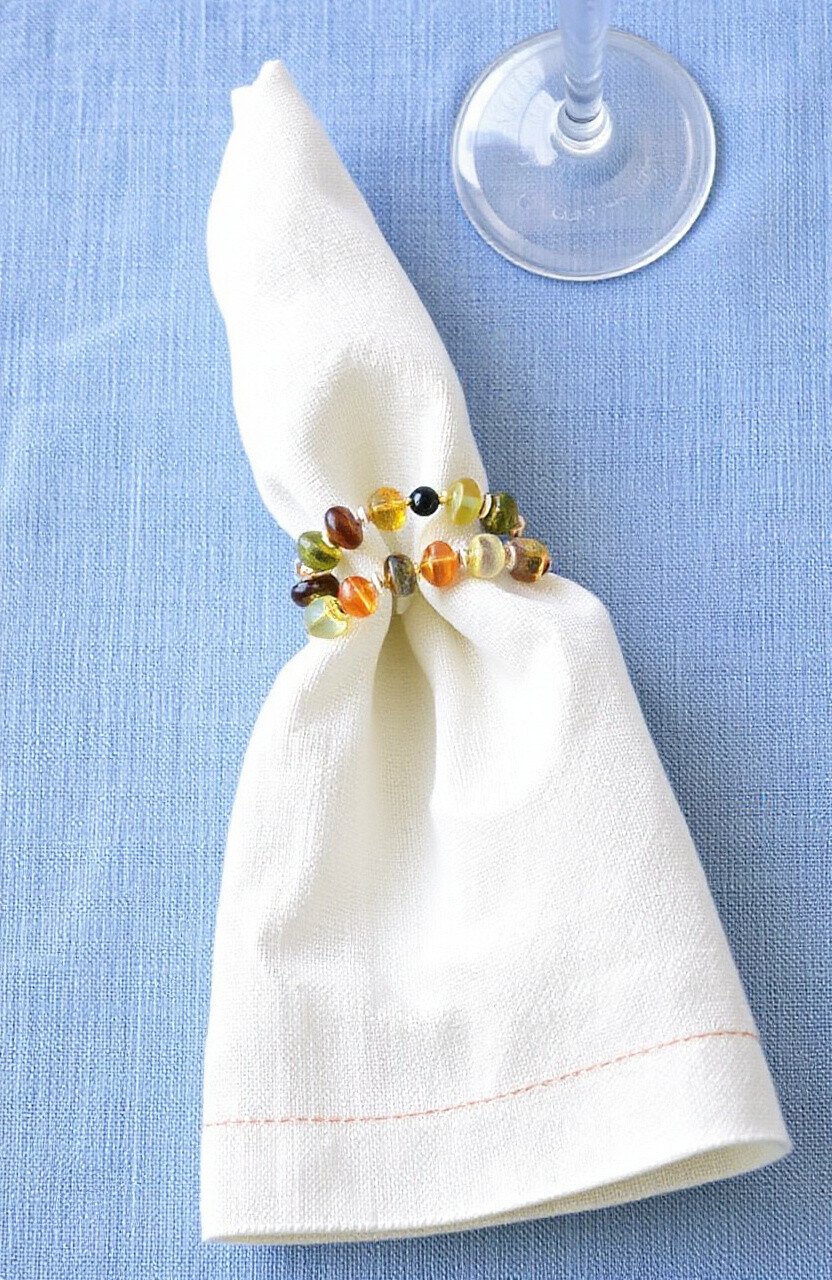 Add a personal touch to your table setting with hand-stamped napkins. Use fabric stamps and ink to create custom designs.