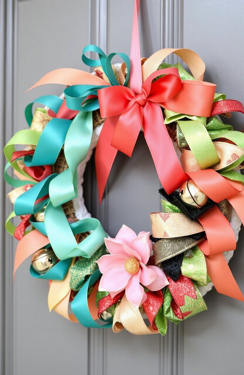 Create stunning wreaths using ribbons in various colors and textures. Wrap them around a foam base and add embellishments like flowers or bells.