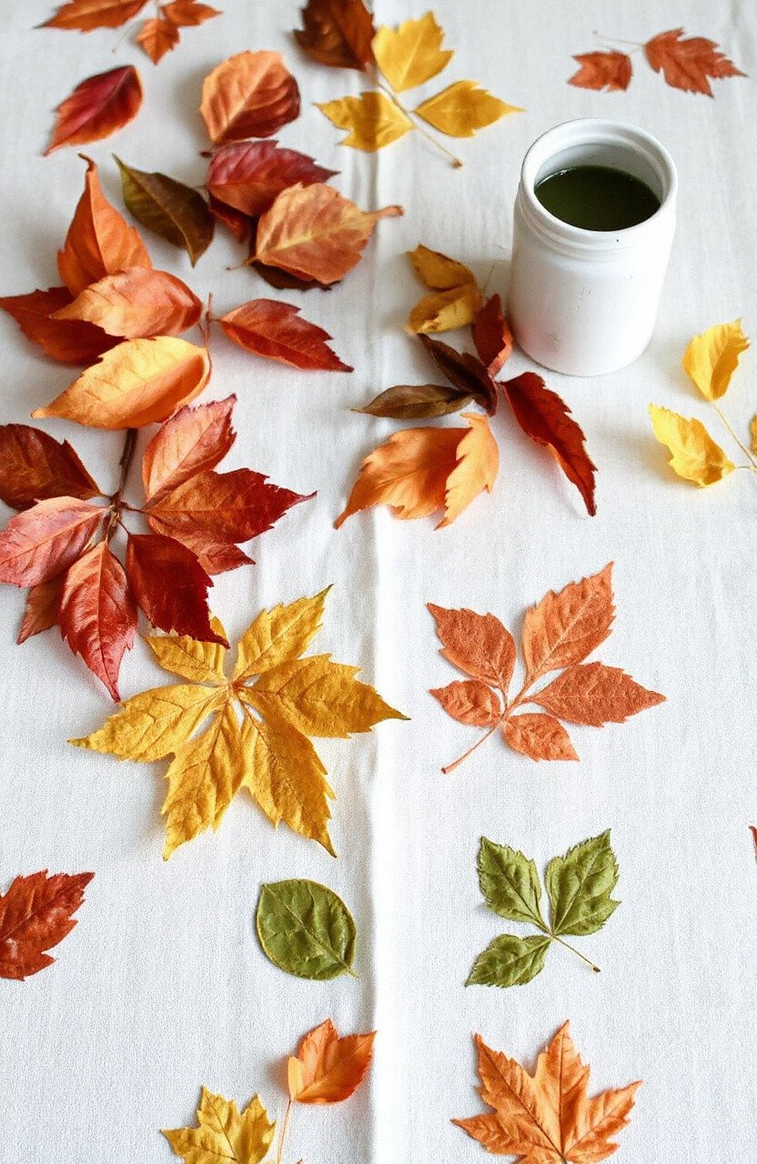 Bring the beauty of the outdoors inside with leaf-stamped tablecloths. Use fabric paint and real leaves to create unique patterns on plain tablecloths.