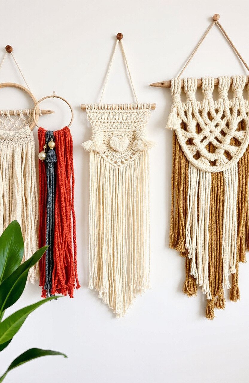 Create textured wall hangings using a simple loom and yarn. Weave patterns and add embellishments like tassels or beads for extra flair.