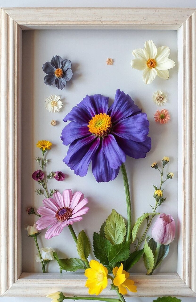 Transform your space with art made from pressed flowers. Arrange them in patterns or scenes. Frame them to create a stunning display.