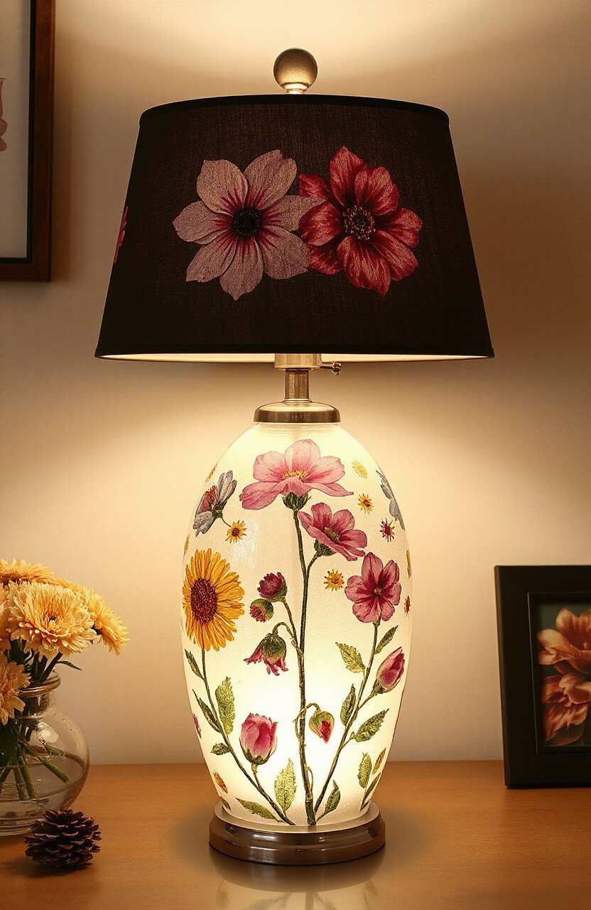 Design a lamp with floral details. Use pressed flowers on the lamp base or shade. This project brings nature’s beauty to any room.