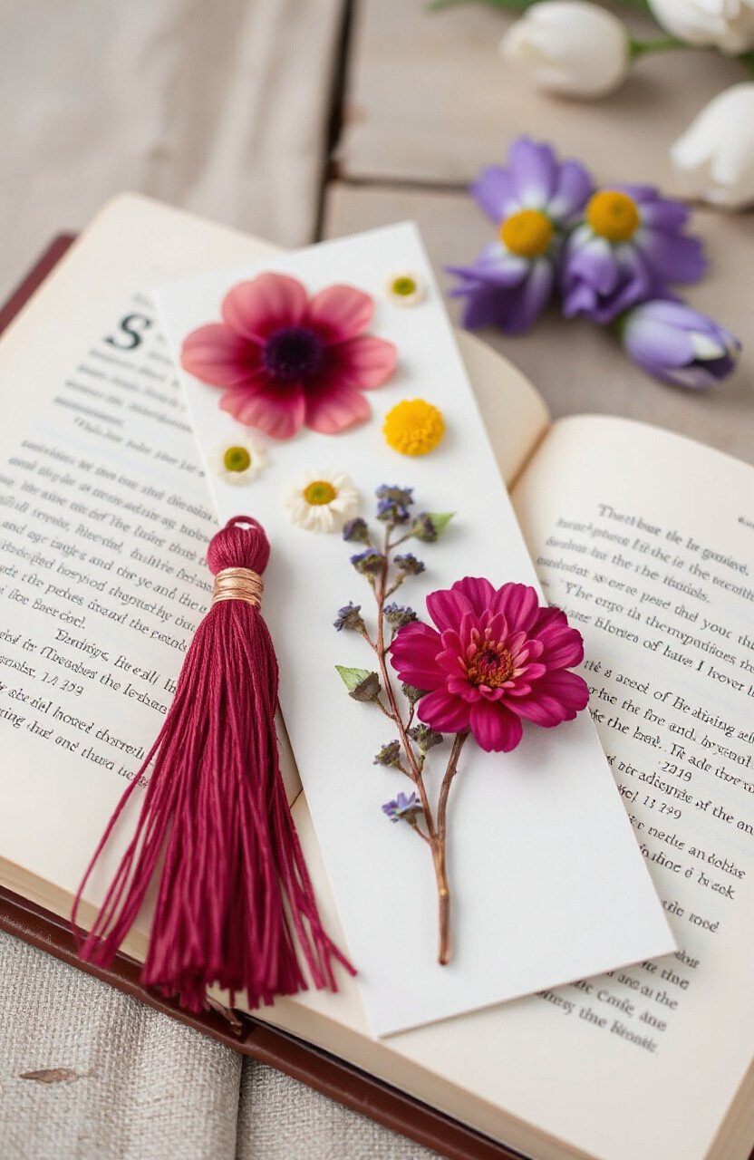 Create a bookmark that’s both functional and beautiful. Use pressed flowers to decorate sturdy cardstock. Add a tassel for a touch of elegance.