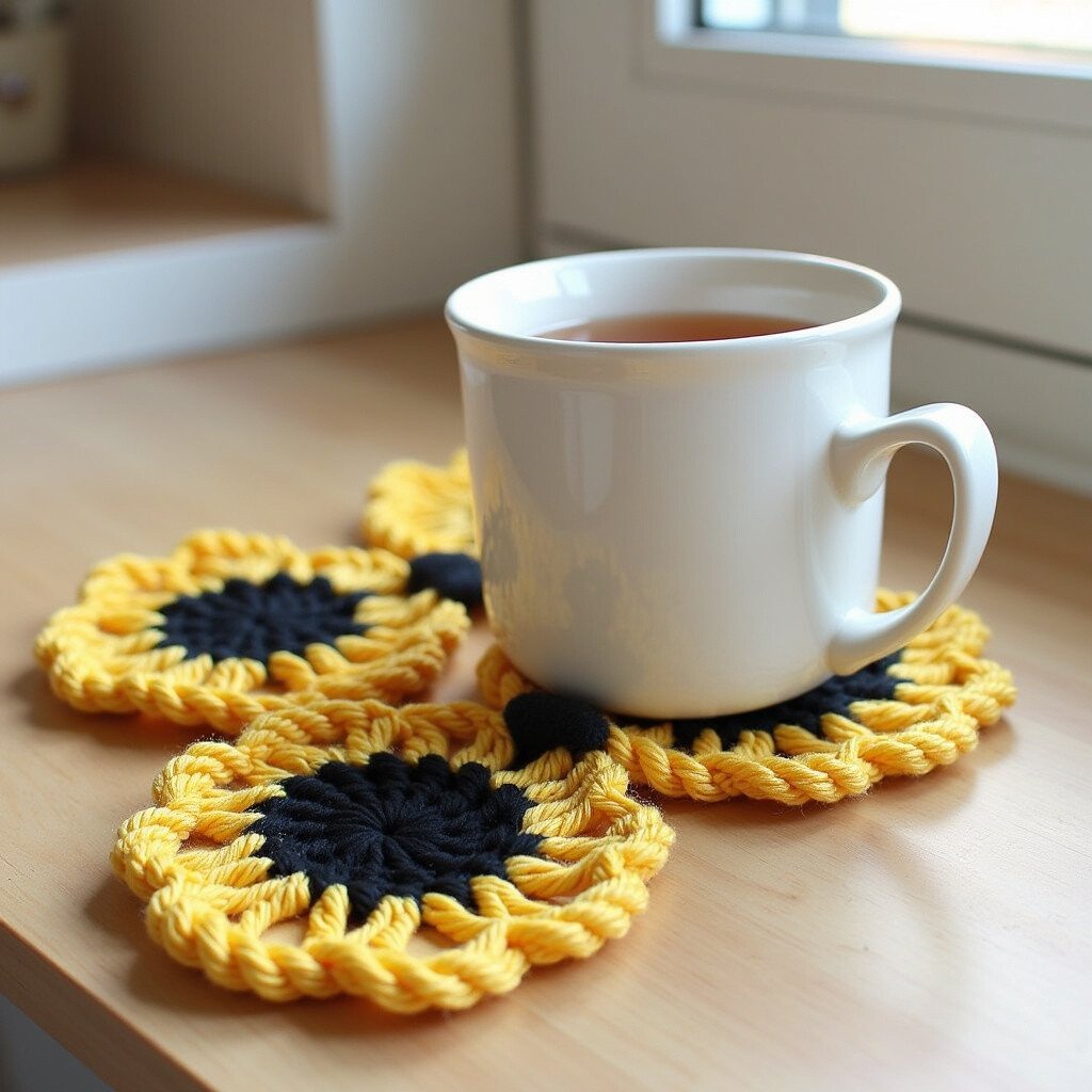 Crocheting is a relaxing hobby, and these coasters are quick to make. Customize each coaster with different yarn textures or colors for variety. Enjoy a cup of tea with a bee coaster to make your day sweeter.