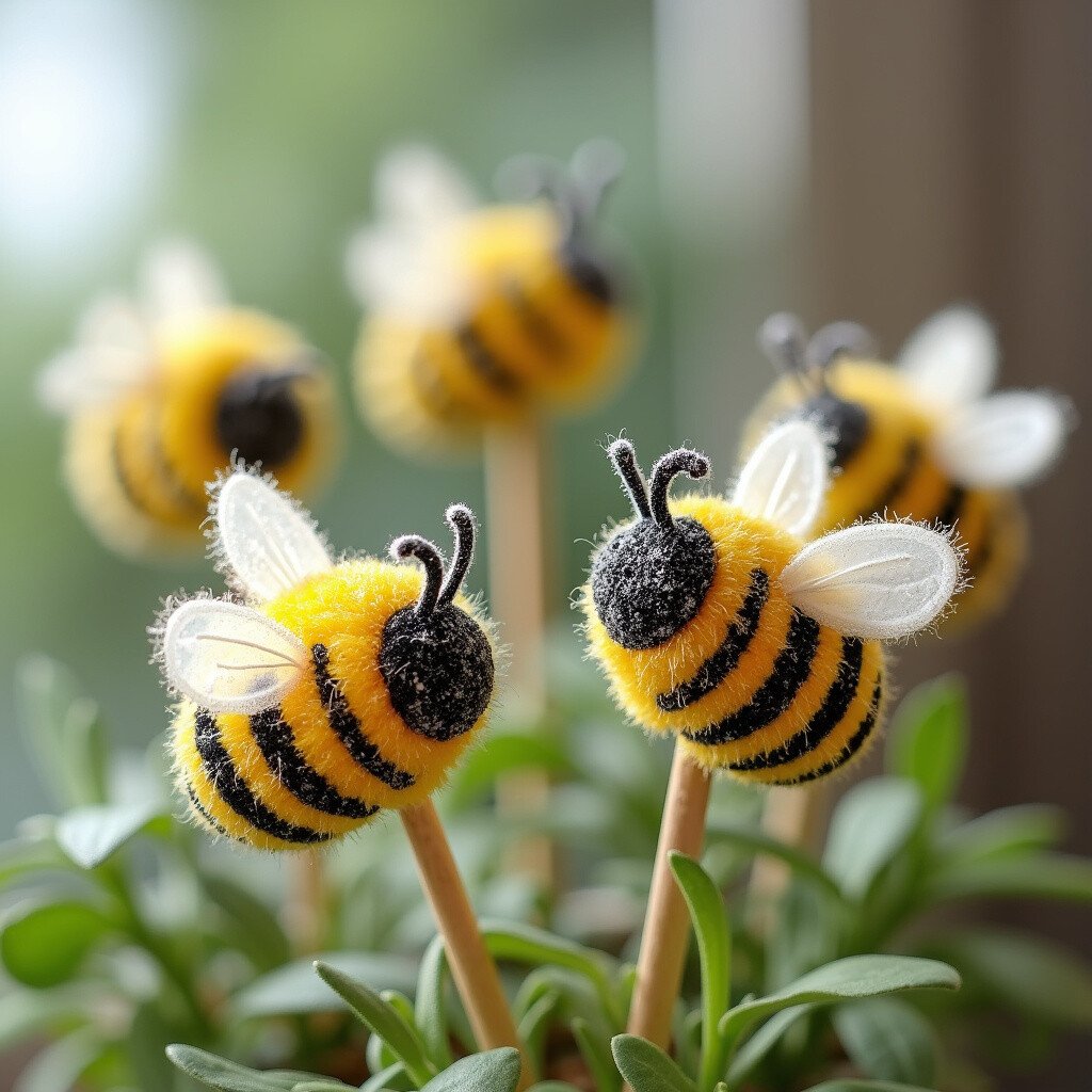 These bees are soft and cuddly, adding a warm touch to your kitchen decor. Hang them on cabinet knobs or place them in a bowl for a pop of color. Add googly eyes to give them personality, making each bee a unique little friend.