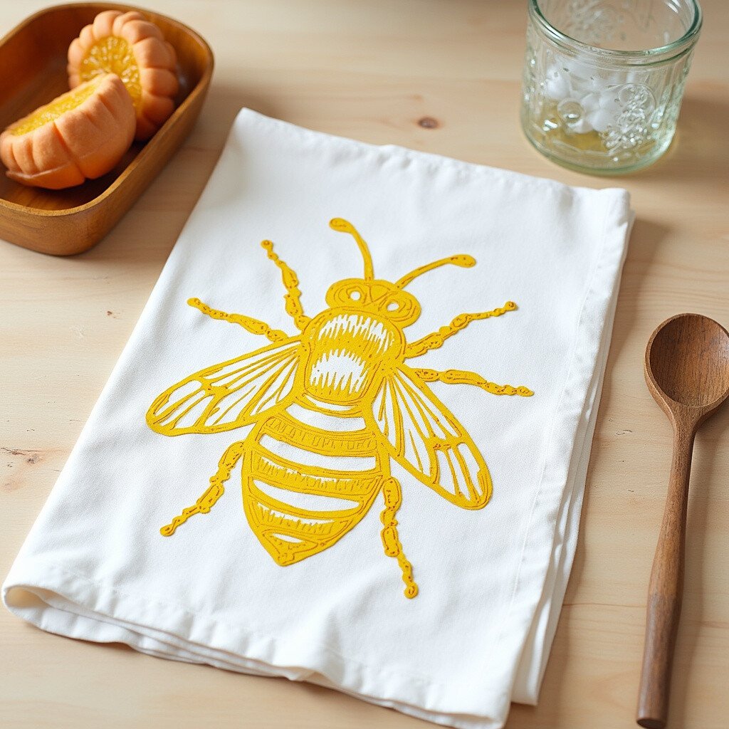 Block print bee patterns onto tea towels for a personal touch. Use fabric paint and bee-shaped stamps to create custom designs. These towels are both decorative and useful, perfect for drying dishes or hands.