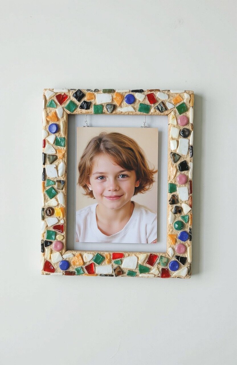 Create colorful mosaic frames using broken tiles, glass, or beads. The patterns are endless, and each frame becomes a unique piece of art. Display photos or mirrors beautifully.