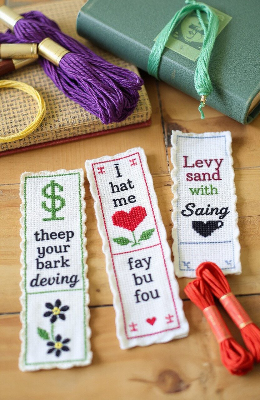 Cross-stitch bookmarks add a handmade touch to your reading experience. Use embroidery floss and cross-stitch fabric to create patterns or quotes. A perfect gift for book lovers.