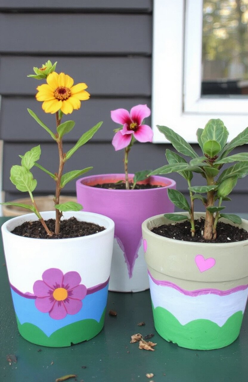 Transform plain pots into art pieces with paint and creativity. Use bright colors and patterns to make your plants pop. Great for indoors or the garden.