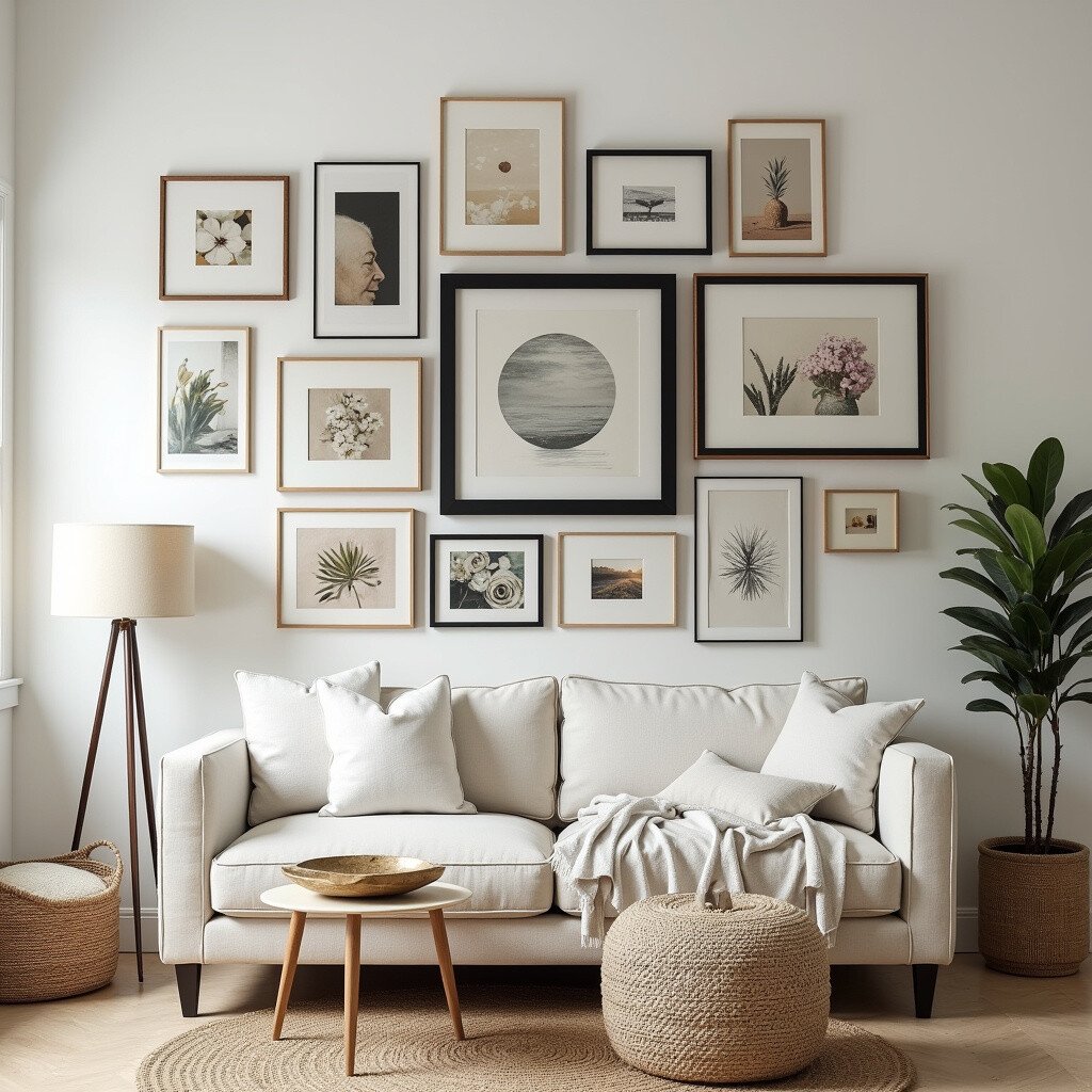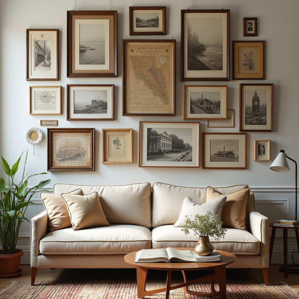Mix old photographs, vintage posters, and antique frames for a look that’s rich in history. It’s warm, inviting, and it tells a story only you can tell.