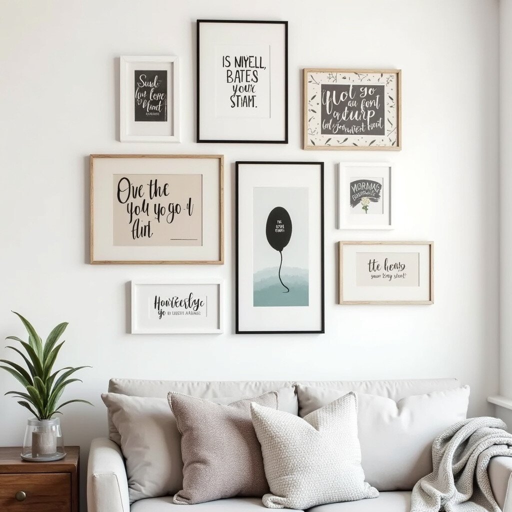 Fill your wall with words that inspire you. Quotes, phrases, and affirmations can make your gallery wall a source of daily motivation.