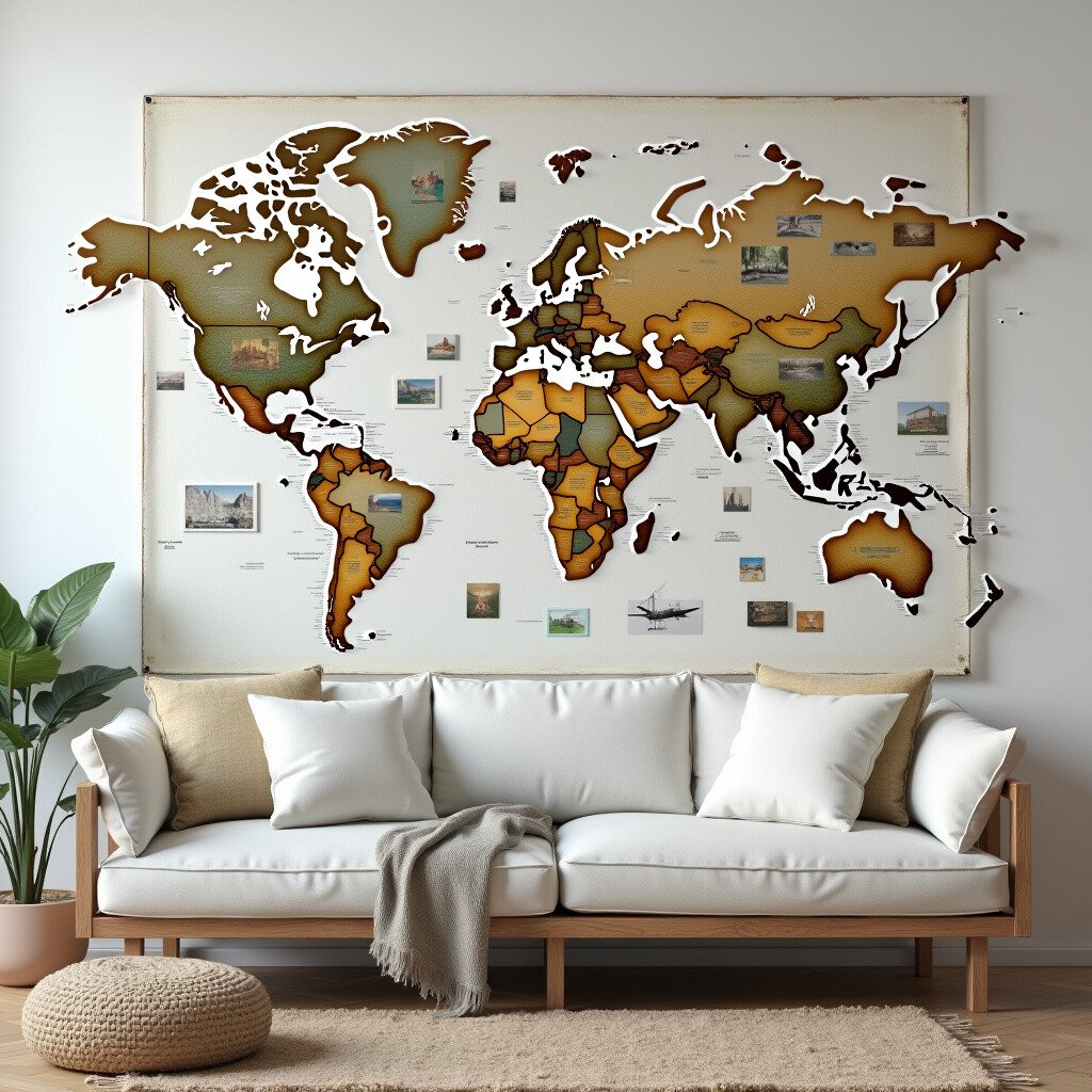 For the wanderlust in you, why not create a travel-themed gallery wall? It’s like a journey around the world, right from your living room.