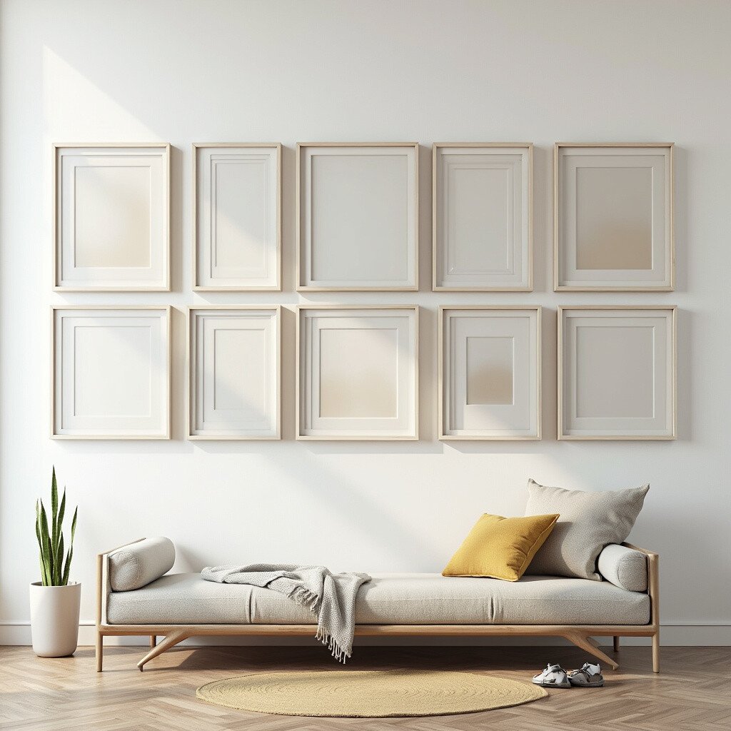Why is it so great? Well, it’s perfect for those who love order. Plus, it makes your artwork the star of the show. Try using the same size frames for a polished look, or mix it up with different colors for a bit of fun!