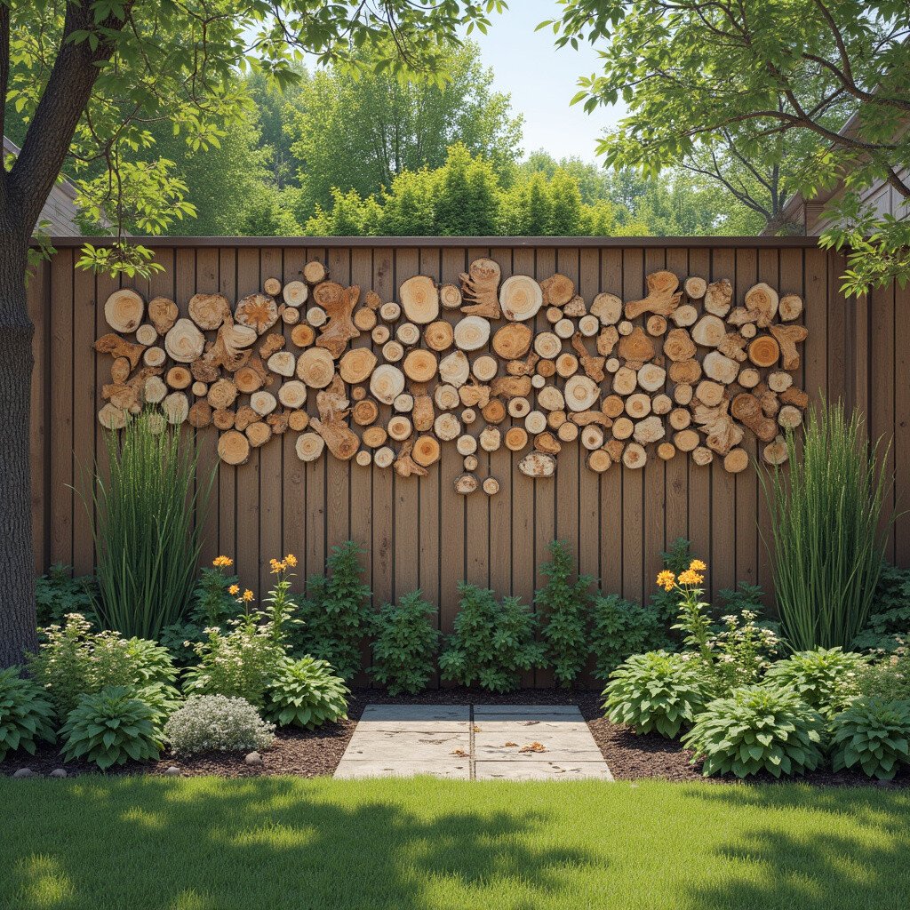 Walls or fences can be blank canvases. Use wood slices, metal art, or painted designs. Create murals or hang individual pieces.