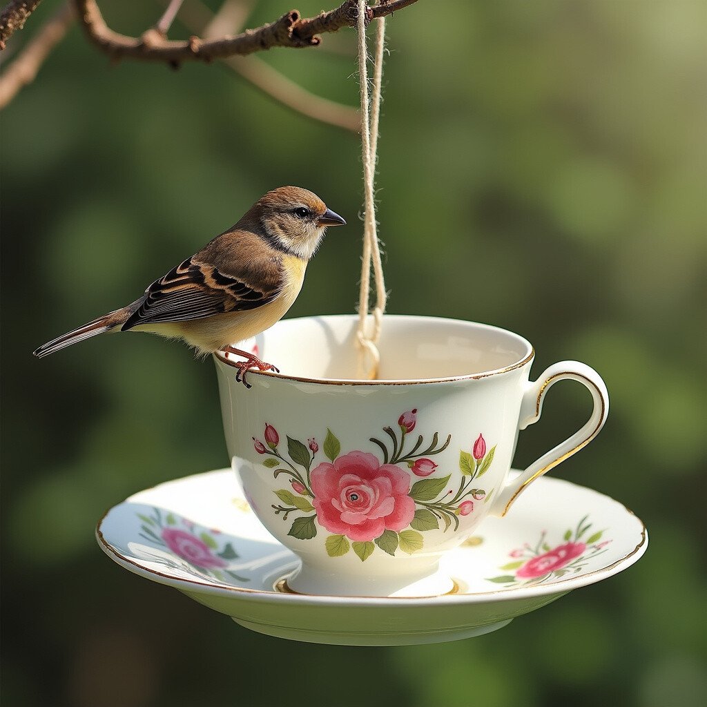 Turn old teacups into charming bird feeders. Hang them from tree branches or place them on stands. The delicate designs of the teacups add a touch of elegance.