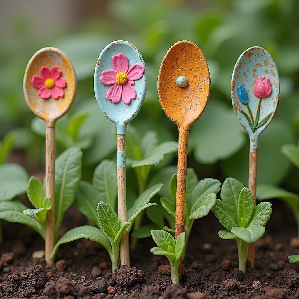 Keep track of your plants with funky markers. Use old spoons, sticks, or rocks. Decorate them with paint or engravings.