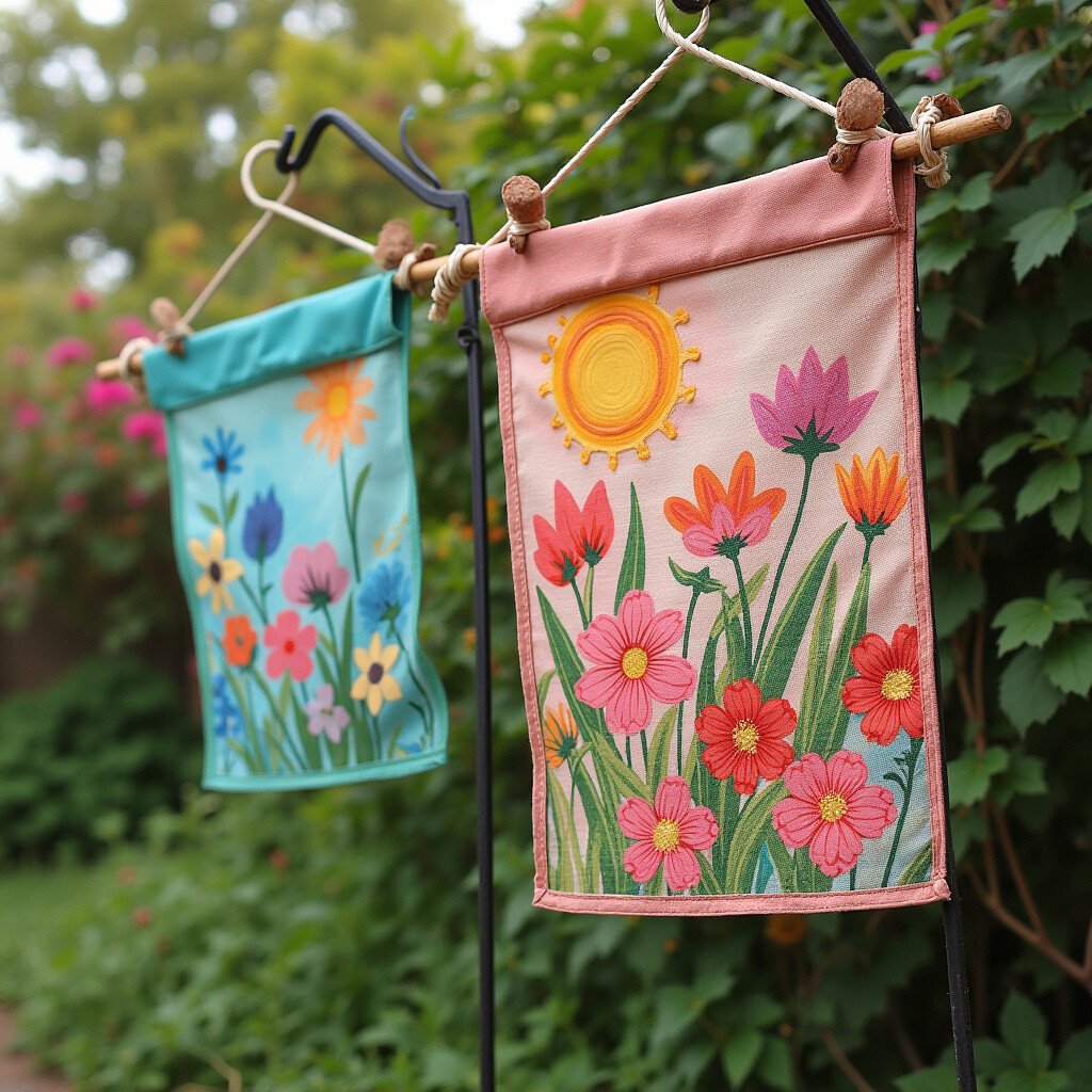 Garden flags add movement and color. They can be made from fabric scraps or painted canvas. Choose colors that complement your garden.