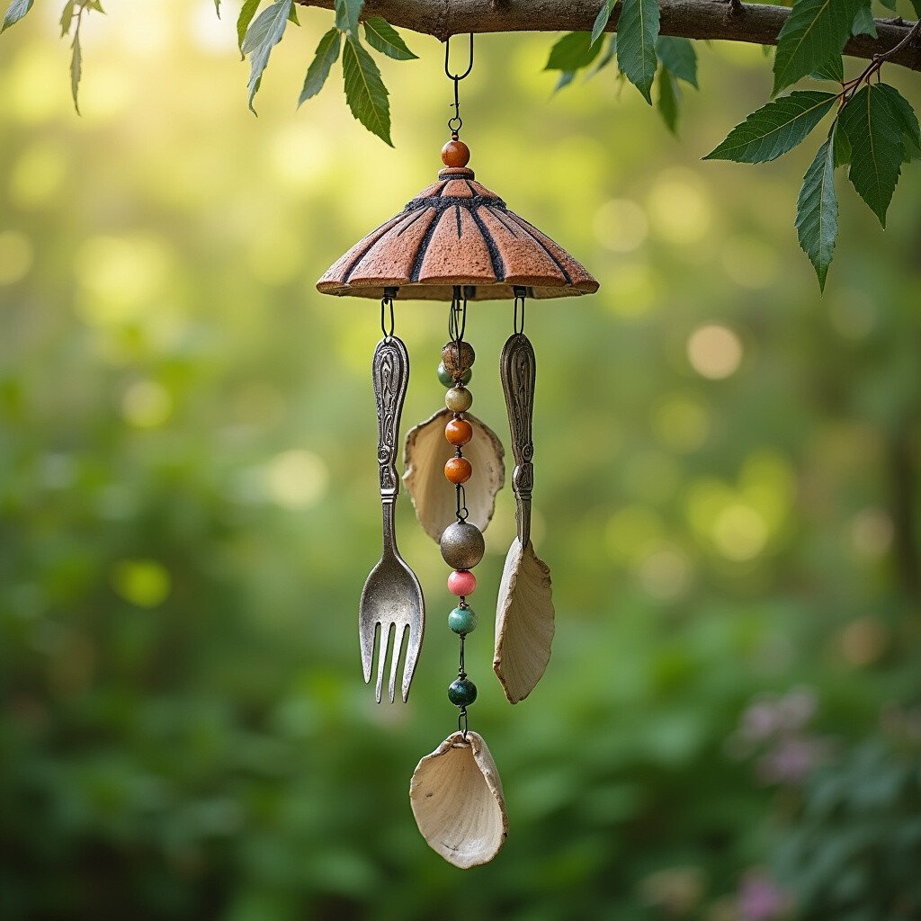 Wind chimes bring music to your garden. Use old cutlery, shells, or beads to create your own. Each chime can have its own unique sound.