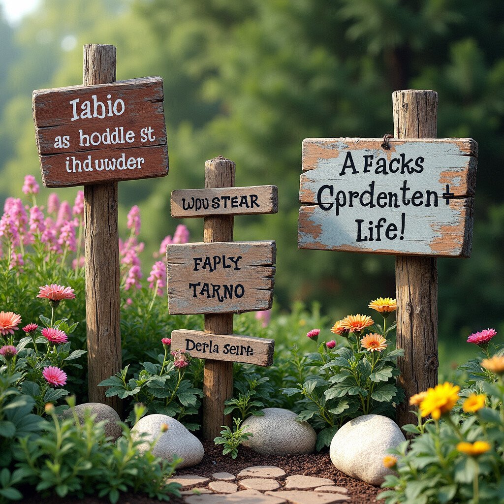 Garden signs can be informative and fun. Use wood, metal, or stones. Paint them with quotes, plant names, or directions.