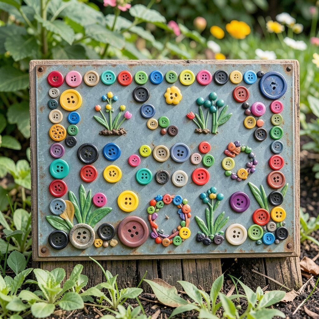 Glue the buttons onto a sturdy base like wood or metal. It’s an affordable and fun way to add character to your garden.