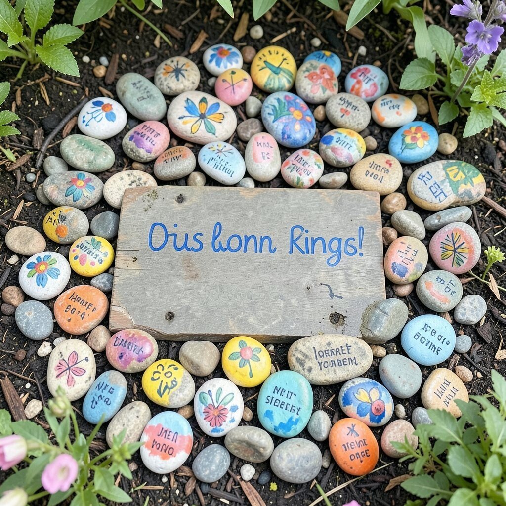 Small pebbles painted with bright designs or simple messages can be scattered throughout your garden. They add pops of color and can be easily rearranged.