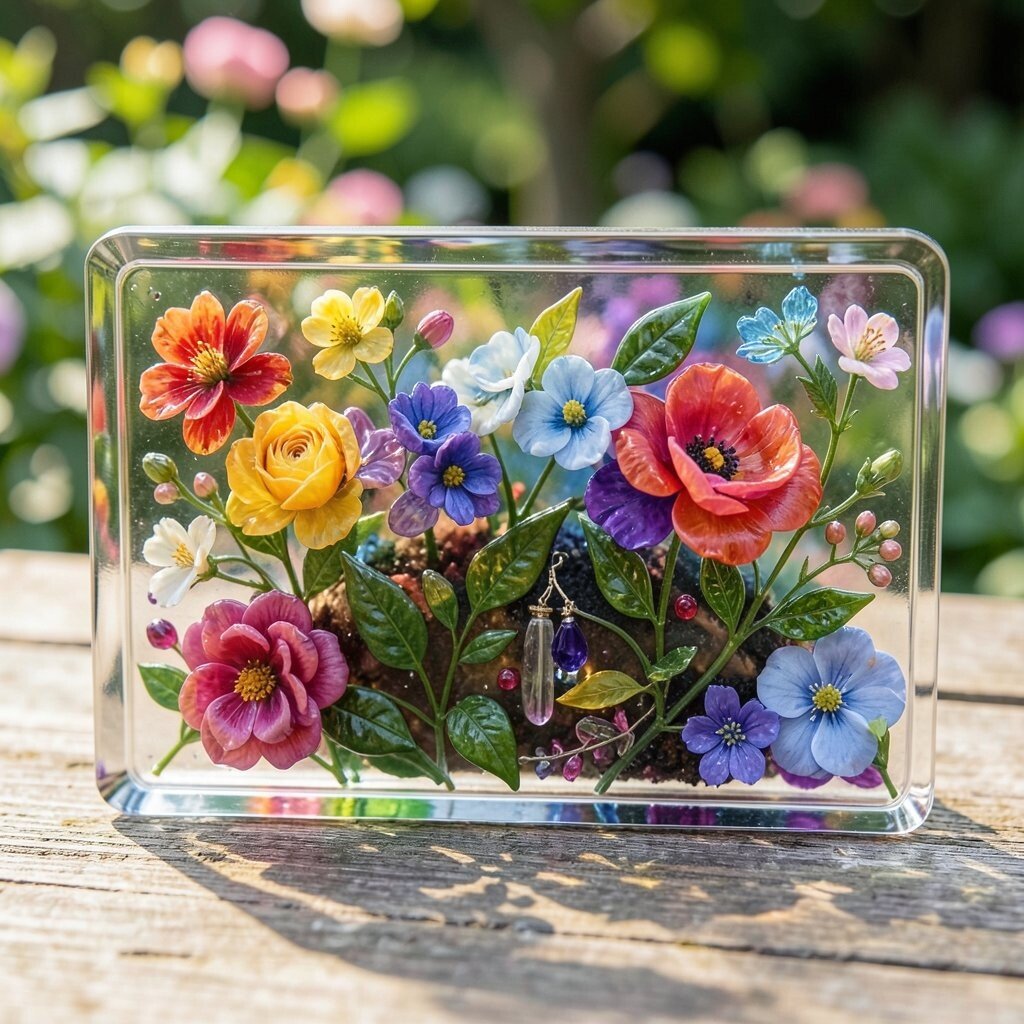 Resin plaques capture the beauty of embedded objects and create a glossy, durable finish. Embed flowers, leaves, or small trinkets to preserve them in time.