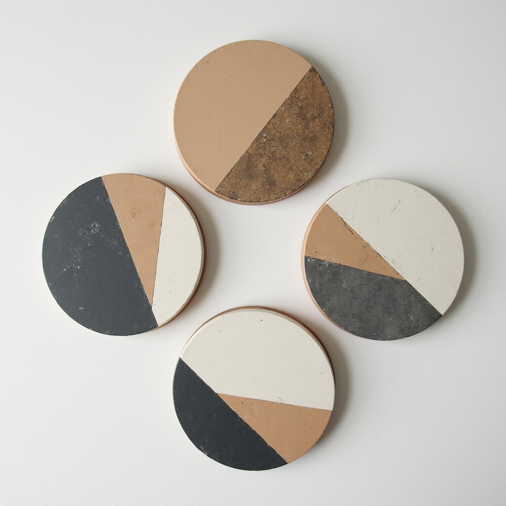 If you prefer a sleek and simple look, minimalist circular coasters could be just what you need. Using materials like concrete or resin, these coasters can be painted in solid colors or subtle patterns.