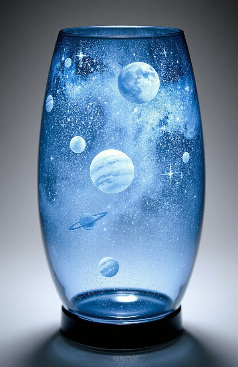 Galactic motifs look stellar on glass lamps or windows. Personalize them with planets or galaxies that fascinate you. It’s a cosmic way to bring the stars into your home.
