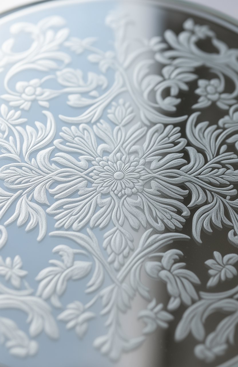 Minimalist etchings work well on glass furniture or decor items. You can choose clean lines and subtle patterns. It’s a cost-effective way to achieve a chic look.