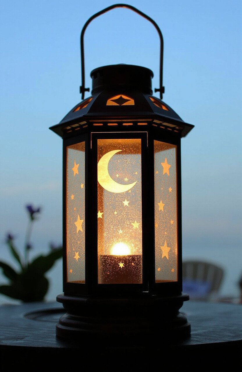 Etched designs on glass lanterns create magical lighting effects. Stars, moons, or floral patterns add whimsy.