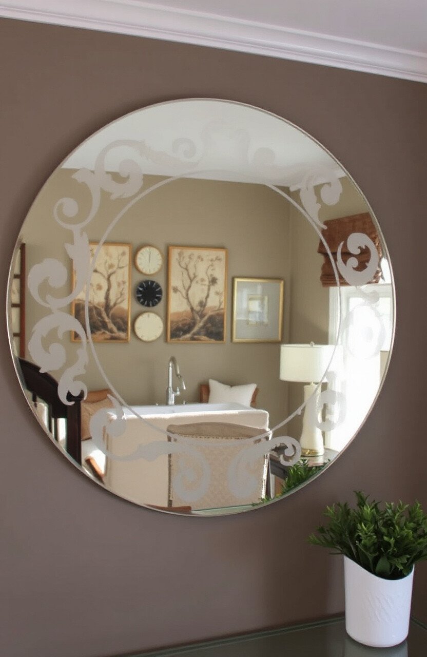 Mirrors with etched borders or center designs can enhance any space. They reflect light beautifully and create an illusion of depth.