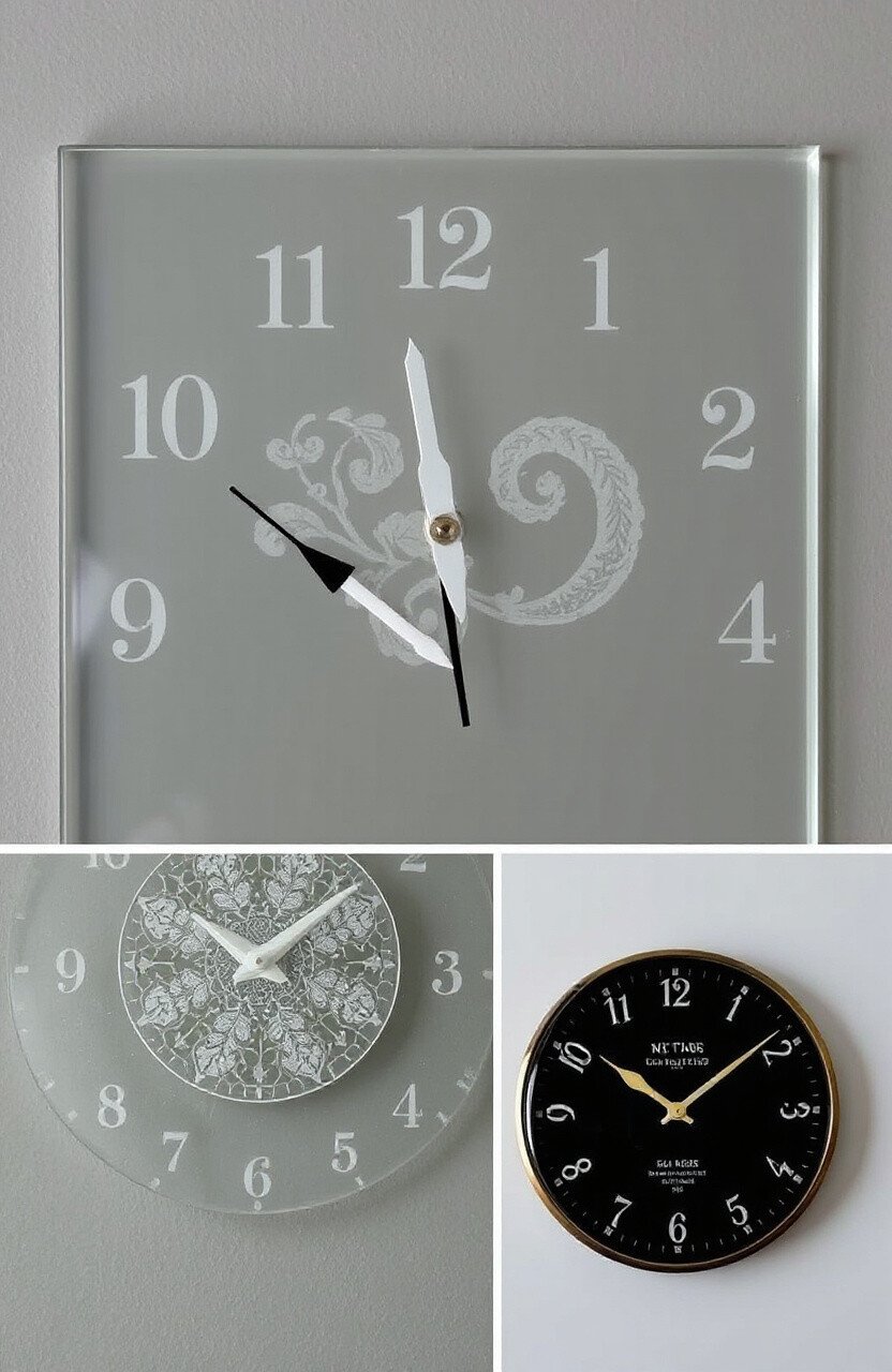 Etched designs on glass clocks add a personal touch to timekeeping. Consider numbers or decorative patterns.