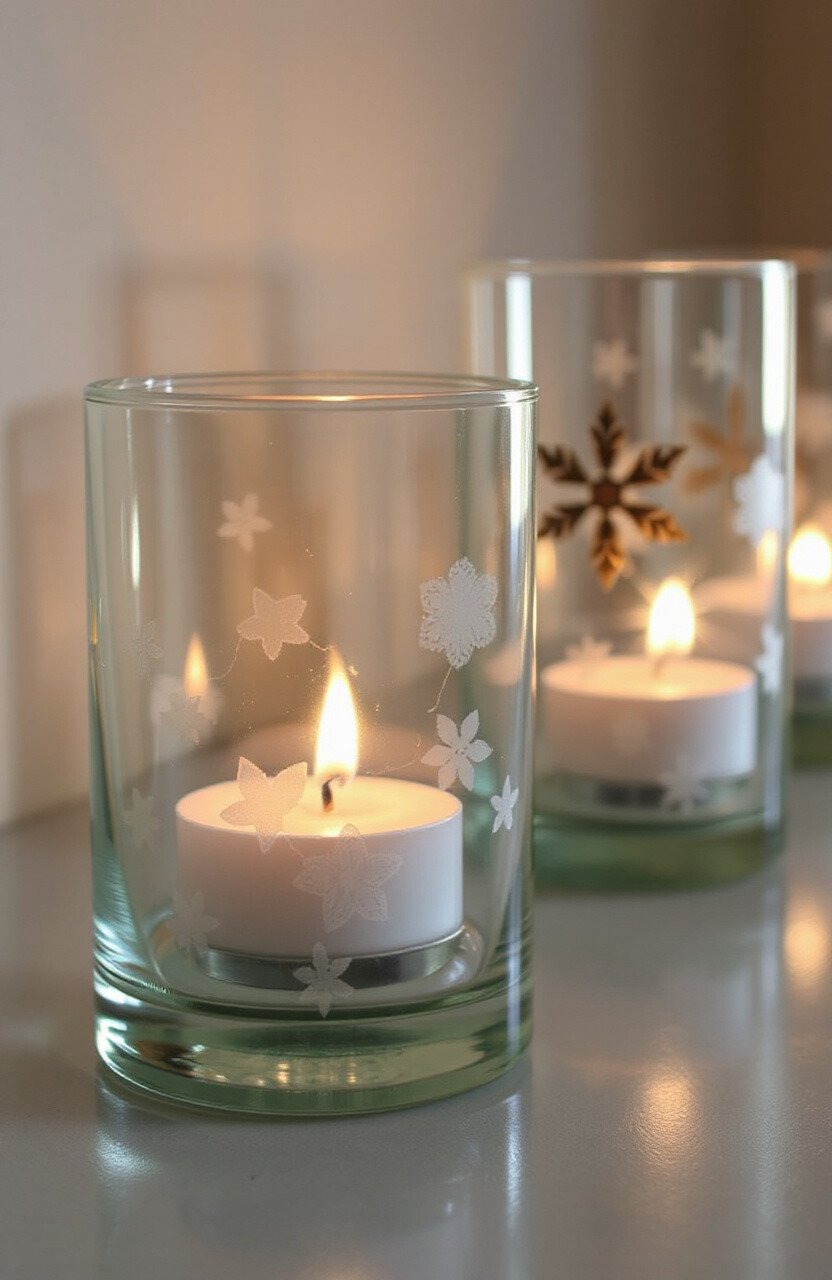 Candle holders with etched designs cast beautiful shadows. They add warmth and charm to any space.