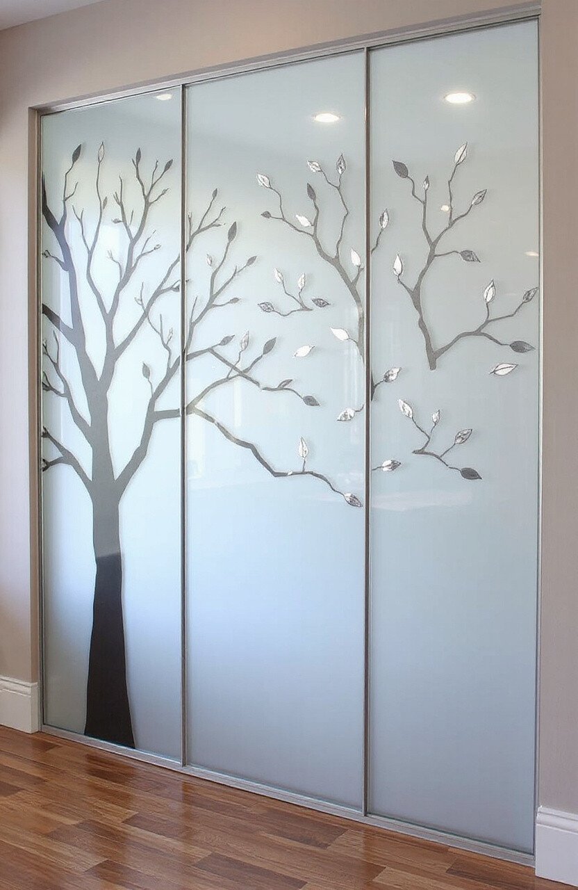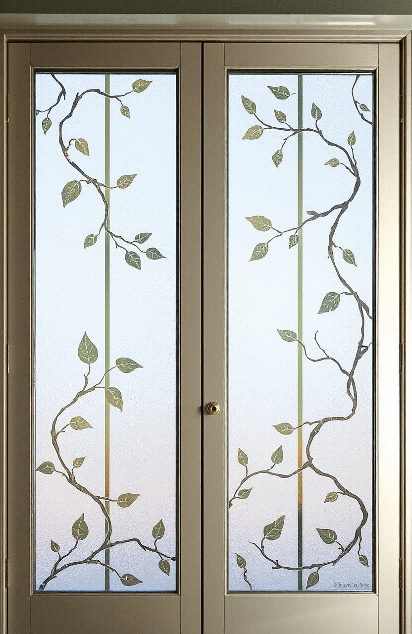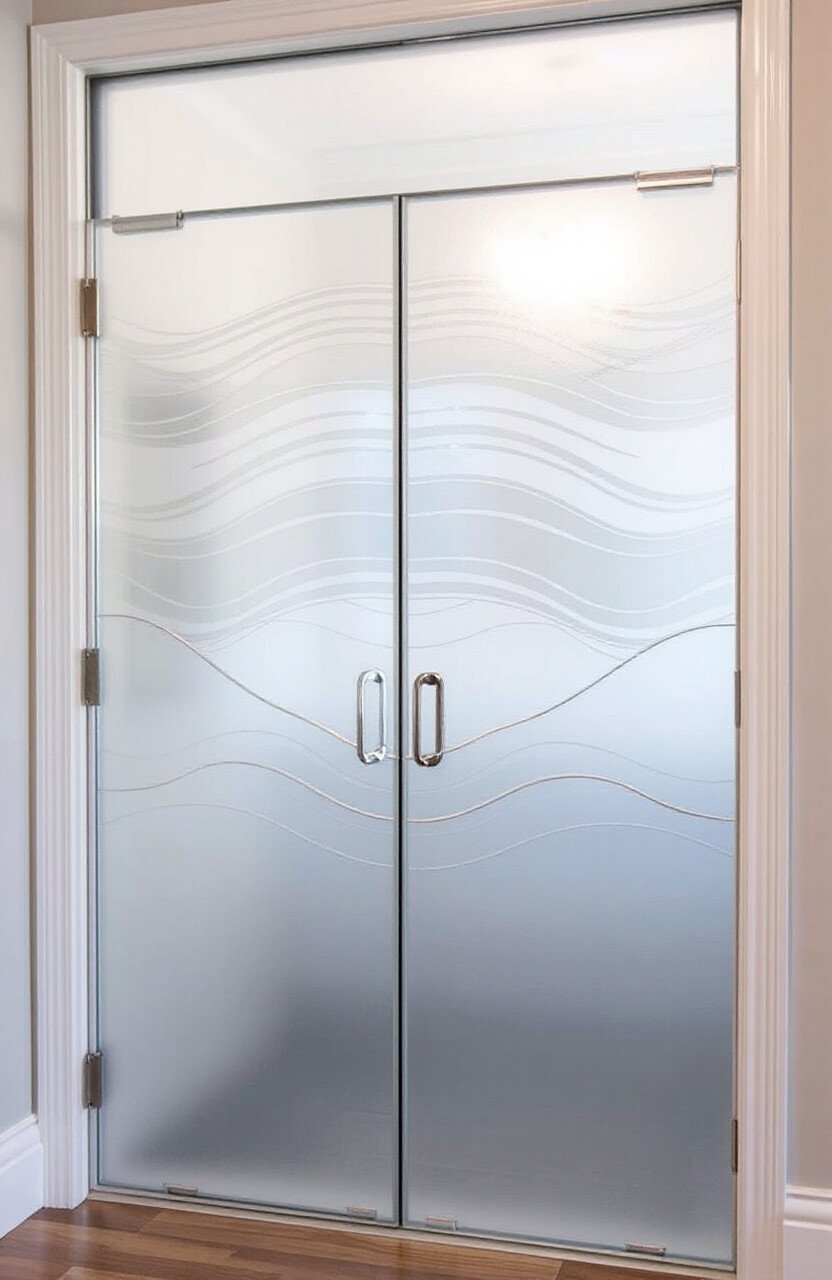 Frosted designs on glass doors offer privacy while letting light in. Perfect for bathrooms or home offices.