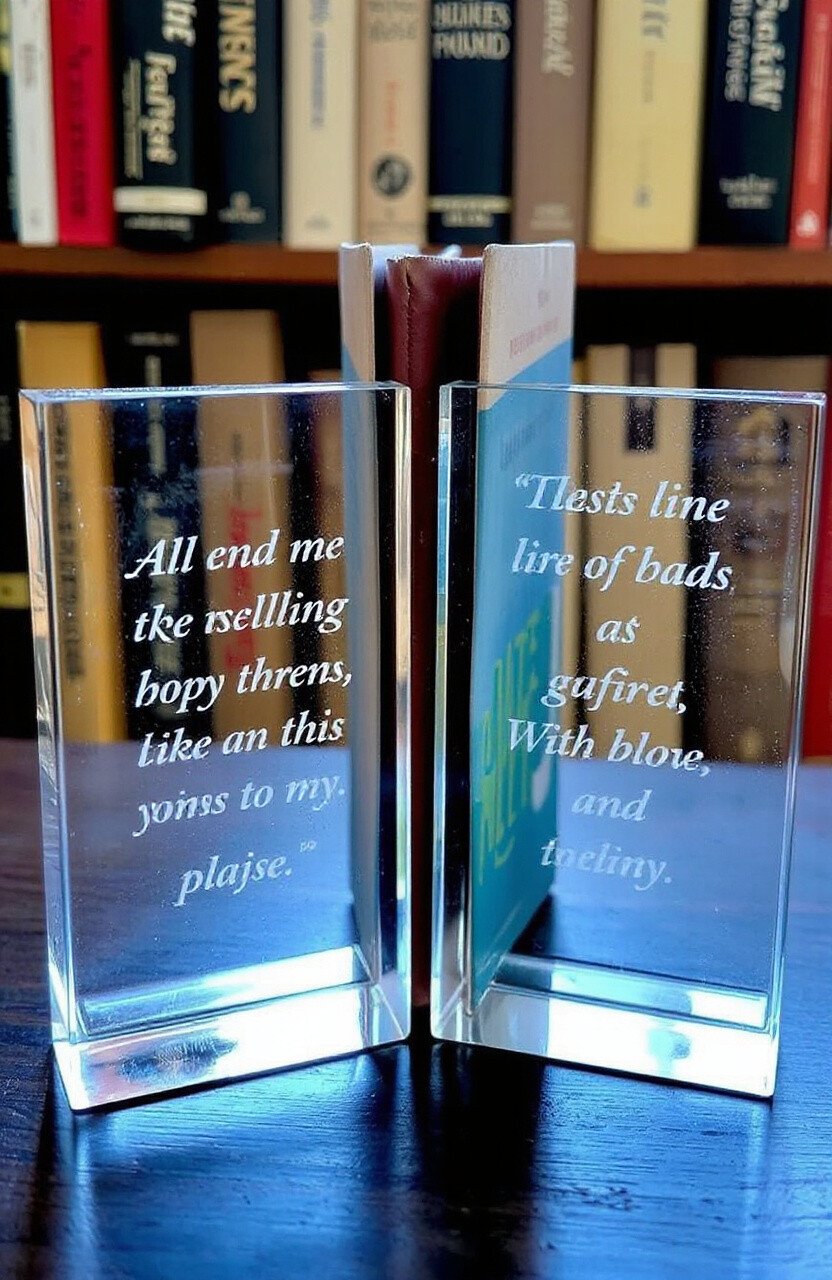 Etched glass bookends bring sophistication to any bookshelf. Simple designs or favorite quotes add character.