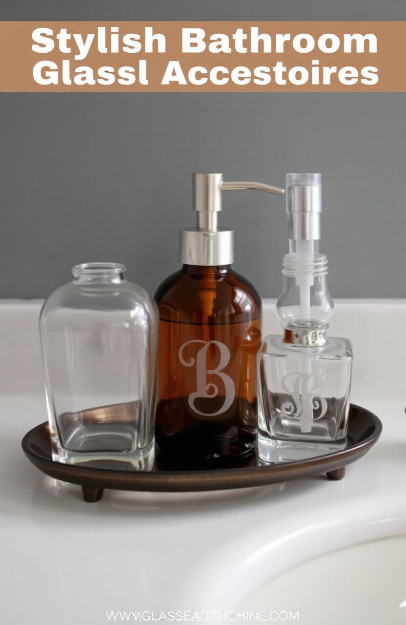 Etched soap dispensers or toothbrush holders add style to your bathroom. Simple patterns or monograms look great.