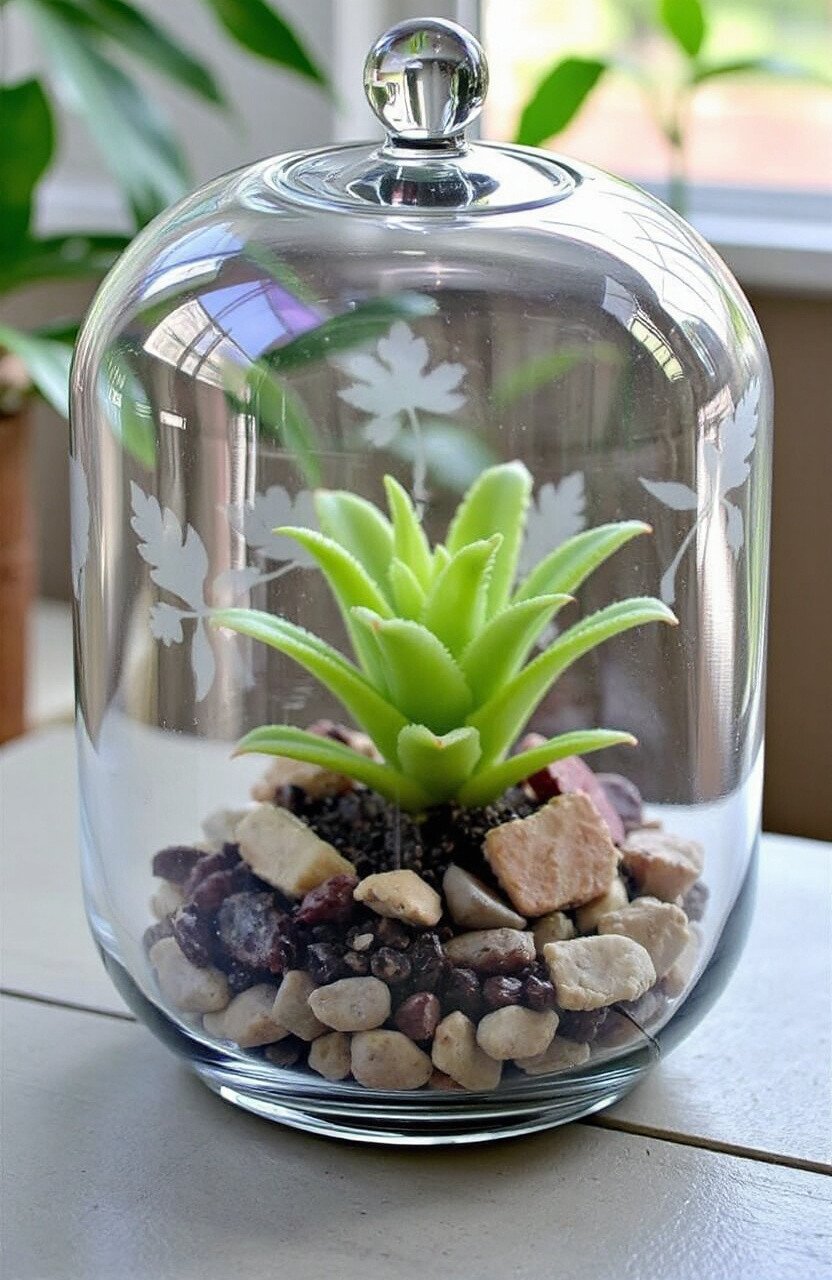 Etched jars with labels or designs organize your kitchen beautifully. Think “sugar,” “coffee,” or “spices.”