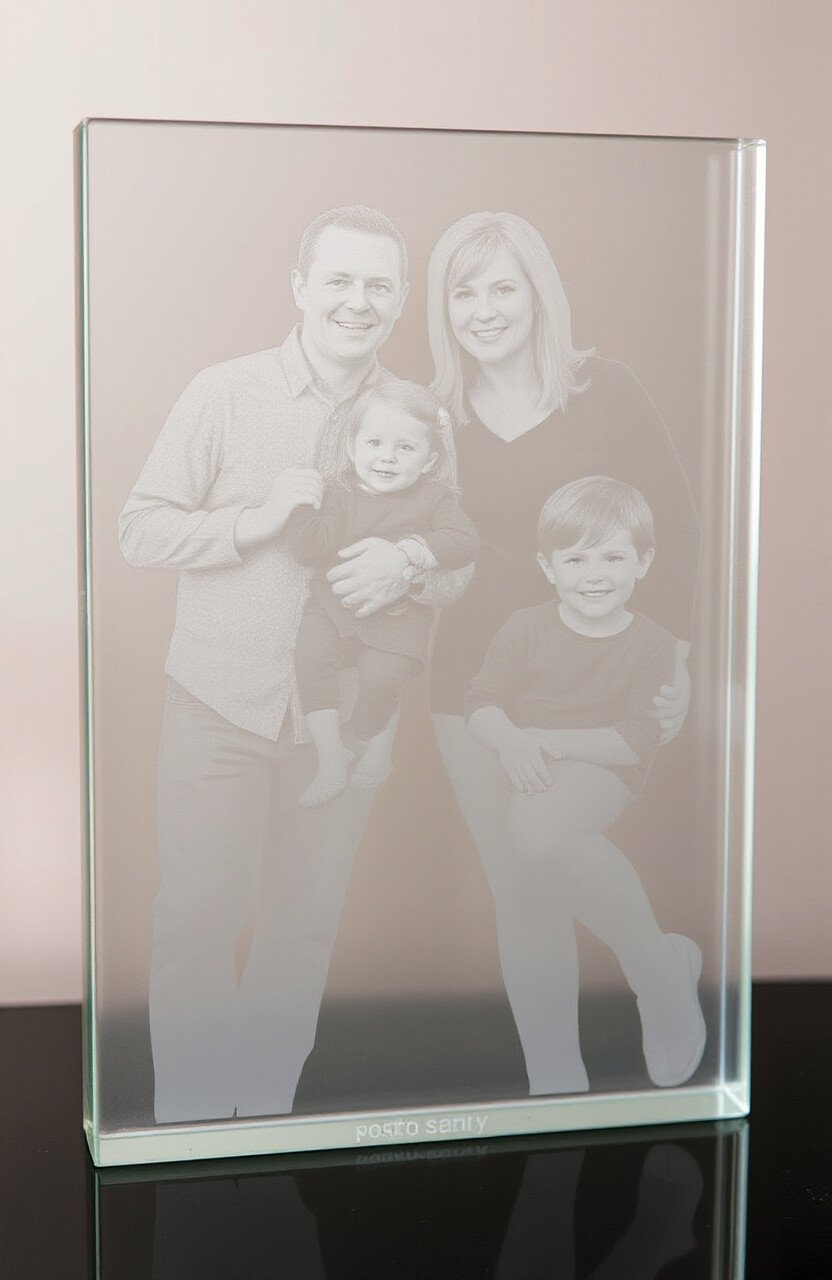 Turn photos into etched portraits on glass. Capture your family’s essence in a unique way, with each detail carefully etched. It’s a decorative piece and a cherished keepsake.