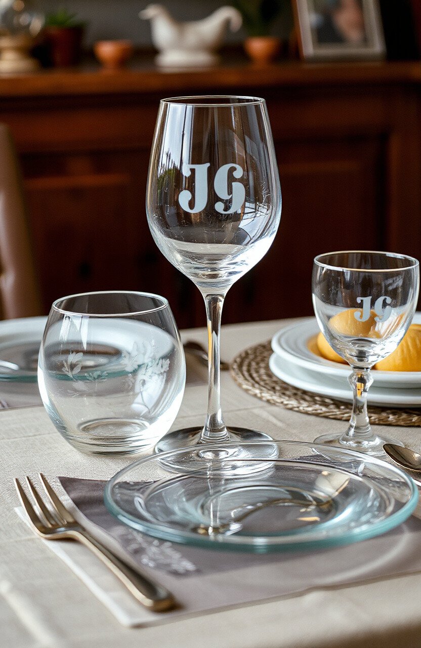 Monogrammed wine glasses add a personal touch to your glassware collection. Choose elegant fonts or quirky designs to etch initials onto each glass. Perfect for gifts or special occasions, they make each sip feel unique.