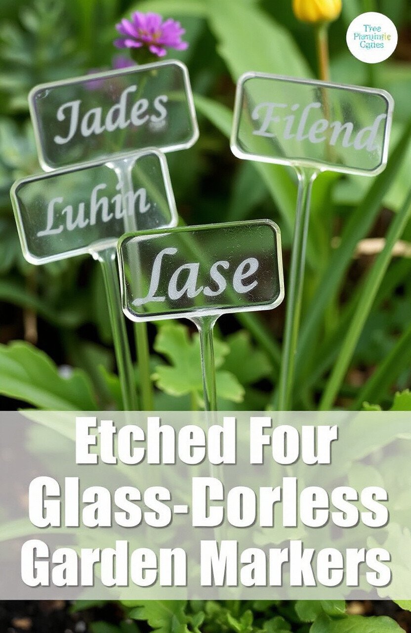Label your garden plants with etched glass markers. They’re weather-resistant and stylish, adding a touch of sophistication to your garden. Each marker can be as colorful or minimalistic as you like.
