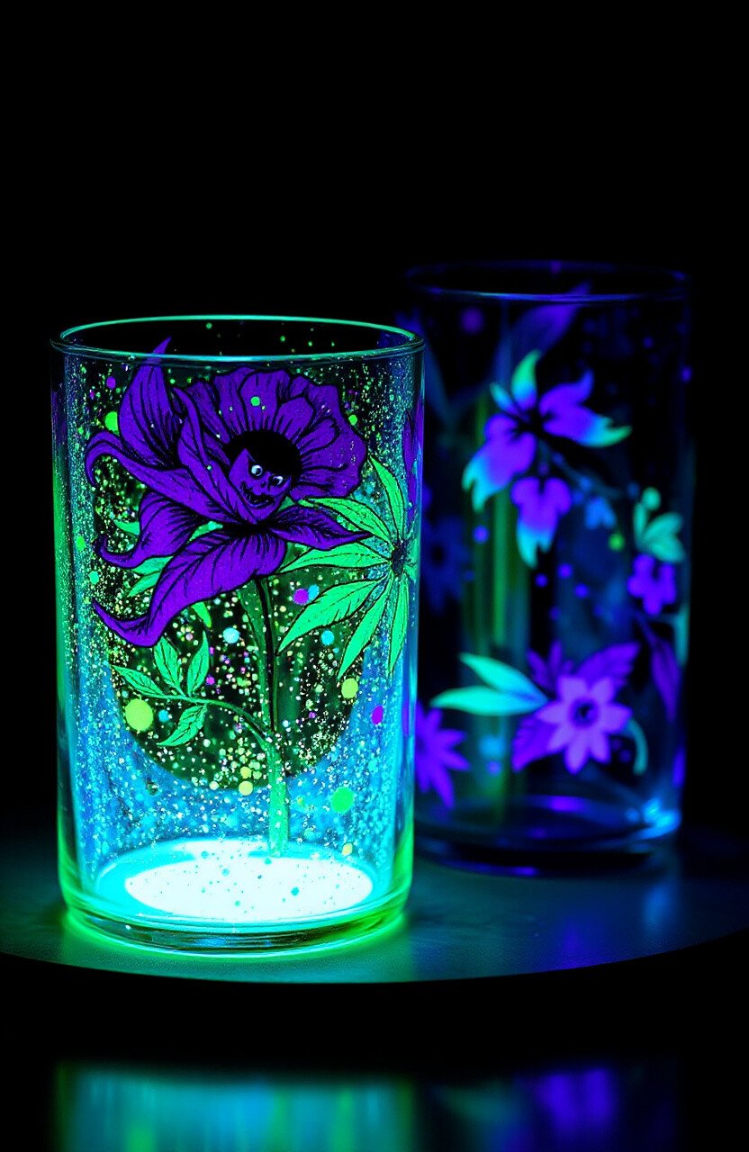 Make your glass items stand out even in the dark with glow-in-the-dark paint. This fun technique adds a magical touch to your decor.