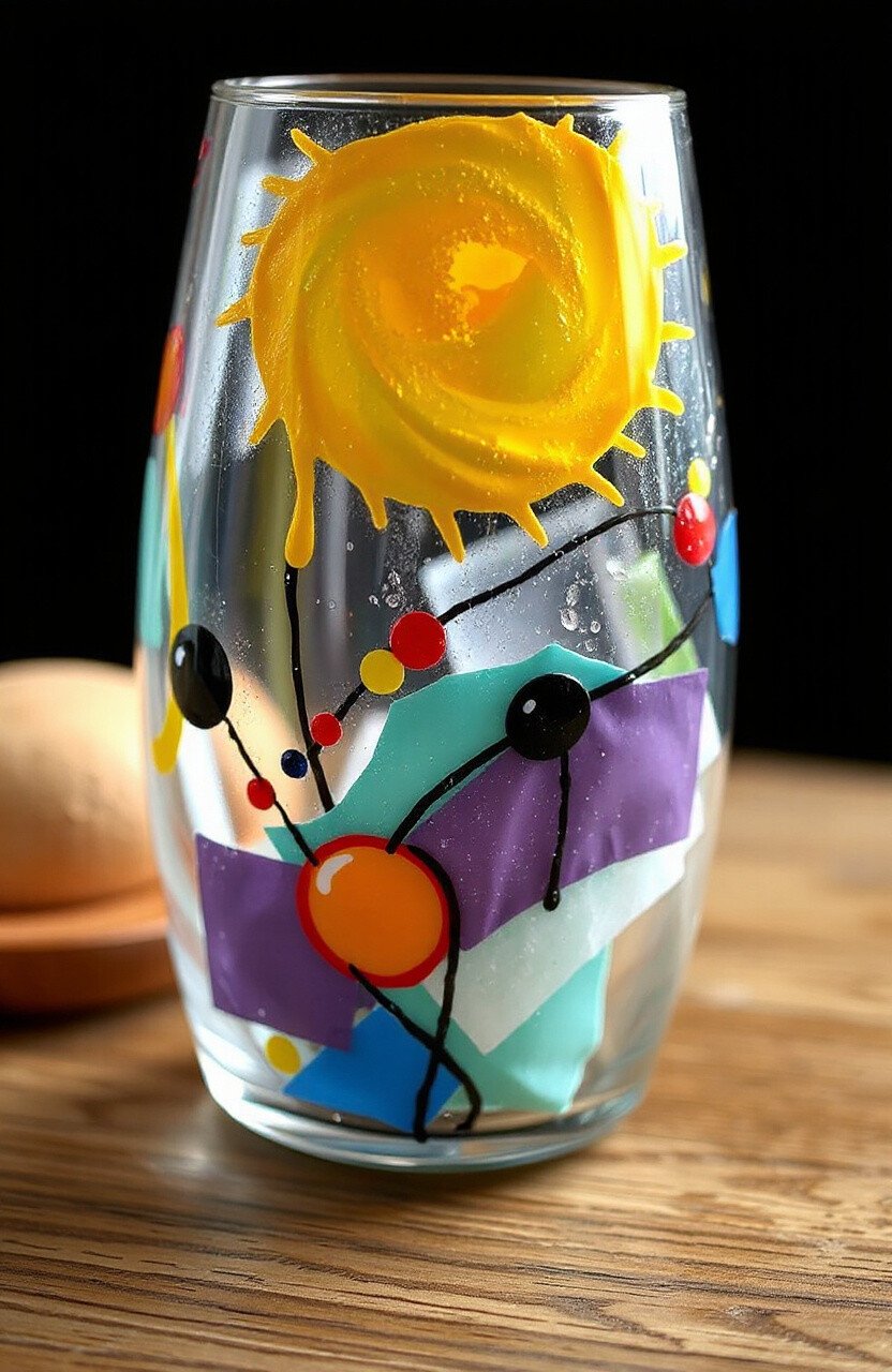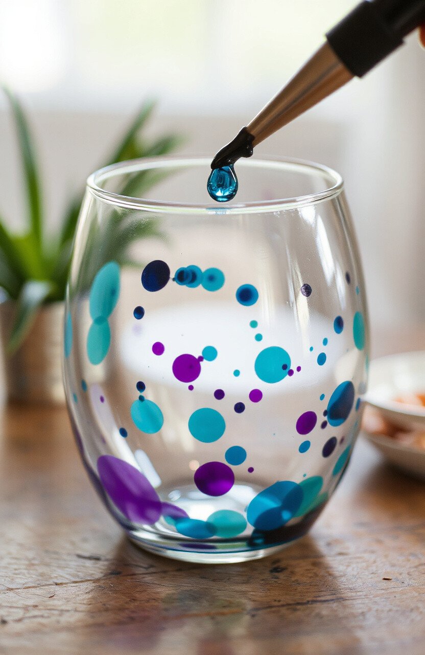 Dot painting on glass brings a pop of fun with its tiny, colorful dots creating intricate patterns. This technique can transform glassware into playful pieces of art.