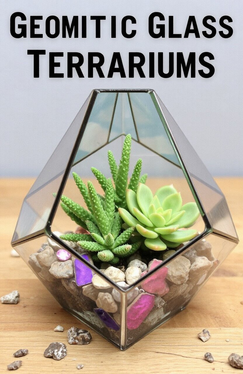 Combine the beauty of glass painting with the natural charm of terrariums. Geometric glass terrariums are elegant and modern, offering a unique way to display plants. Paint the edges or panels with metallic or vibrant colors for an eye-catching effect.
